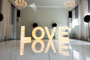 Giant 4 foot illuminated LOVE marquee letters. Suppled with 3w warm white LED lamps.