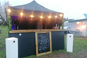 4.5m x 3m Black Surf and Turf gazebo with optional wooden counter/bar.