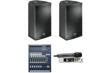 2 x Db DVX HP10 600 Watt Speakers, Small soundcraft Mixer and Sennheiser Wireless Microphone (Including set up)